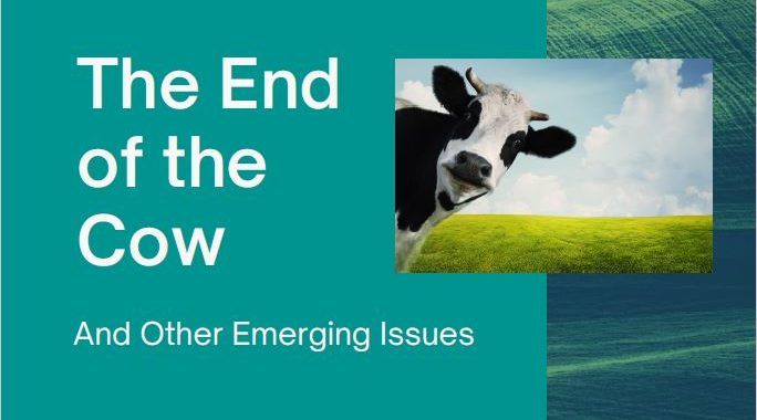 The End of the Cow And Other Emerging Issues explores five disruptions that have the potential to dramatically impact wellbeing, food systems, climate change, gender equity, the family, and how we learn. It consists of six chapters: