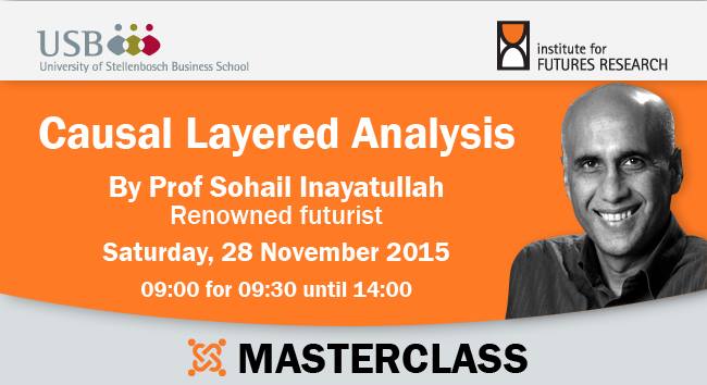 The Institute for Futures Research (IFR) at the University of Stellenbosch Business School (USB) is delighted to invite you to a Masterclass by renowned futurist Prof Sohail Inayatullah.